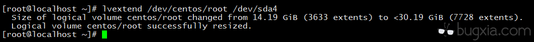 lvextend /dev/centos/root /dev/sda4