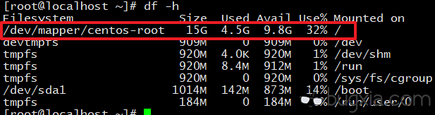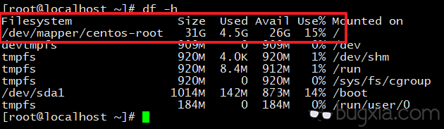 用指令 df -h 查看磁盘情况