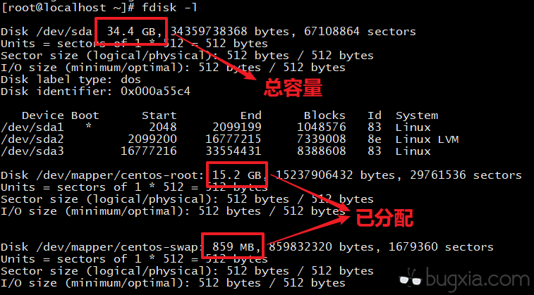 1.查询容量,使用 fdisk -l 命令