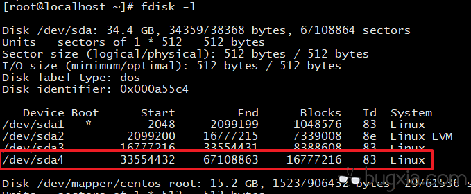 重启虚拟机后,再次执行 fdisk -l 命令查看,发现多出一个分区