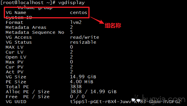首先查看卷组的信息,记录组名称