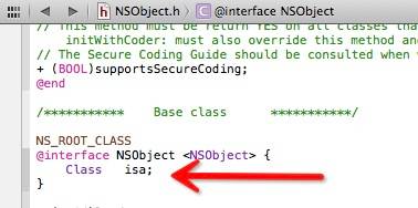 按照面向对象语言的设计原则,所有事物都应该是对象(严格来说 Objective-C 并没有完全做到这一点,因为它有象 int, double 这样的简单变量类型,而 Swift 语言,连 int 变量也是对象)。在 Objective-C 语言中,每一个类实际上也是一个对象。每一个类也有一个名为 isa 的指针。每一个类也可以接受消息,例如代码[NSObject alloc],就是向 NSObject 这个类发送名为alloc消息。