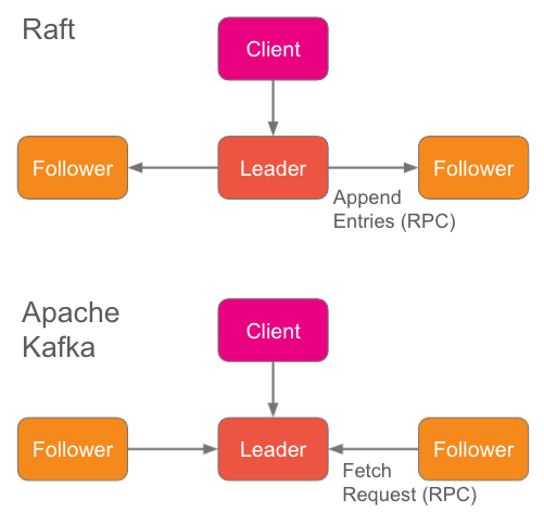 对于Kafka,追随者向领导者发送获取请求,请求包括他们当前的位置。领导者在本地拥有所有状态,只需检索下一个数据并将其发送回跟随者。