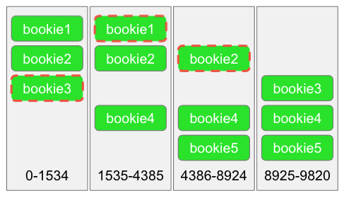 这些ensemble change的结果是,ledger可以被视为一系列小日志(我们称之为fragment),它们构成了一个更大的日志。每个fragment都有一系列连续的条目,其中每个条目共享相同的bookie集合(ensemble)。每次向bookie的写入失败时,客户都会进行ensemble change并继续,从而创建由一个或多个fragment组成的ledger。