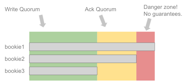 BookKeeper对所需的复制因子和commit quorum有类似的配置。