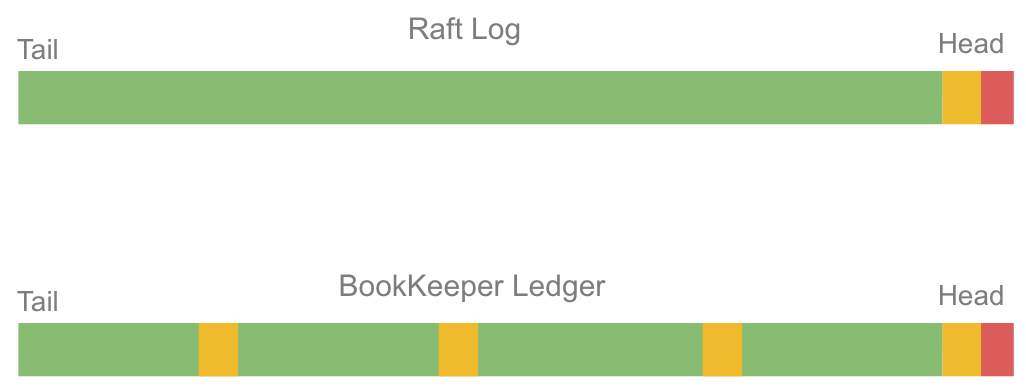 Ledger中间的部分可以只有AQ个副本,这一事实让许多人感到惊讶。大多数人可能会期待类似Raft/Kafka的模式,即只在日志头部才存在未完全复制的条目。