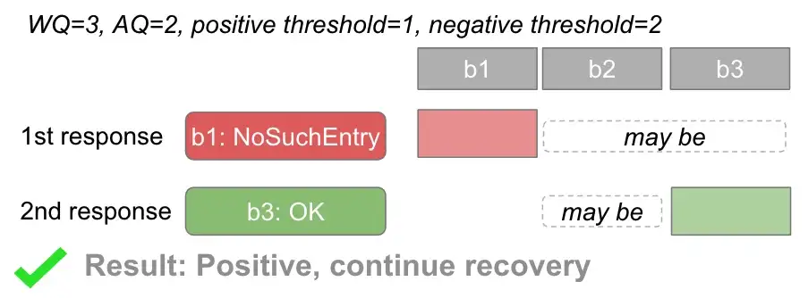 客户端只需要简单的对negative响应进行计数,如果数量达到了quorum coverage阈值,那么entry就是不可恢复的。