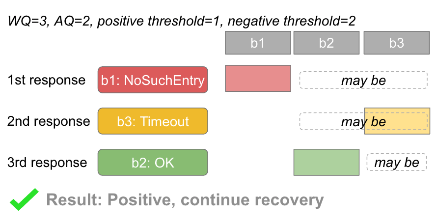 在收到每个响应后,客户会评估条目是否可恢复、不可恢复或需要等待更多响应。