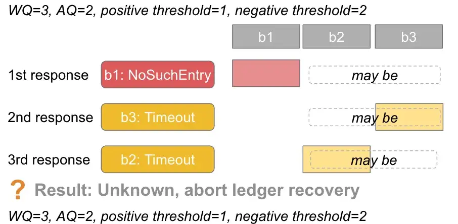 Ldger截断是需要警惕的事情。接下来,我们将介绍它可能发生的一些方式以及如何避免。理解ledger截断是如何发生的,关键在于理解ledger recovery过程怎样决定哪些条目是可恢复的,哪些是不可恢复的。
