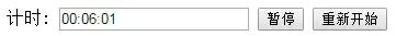 <label>计时:</label> <input type="text" name="" id="timer"/> <button onclick="pause(this)" id="pause" state="on">暂停</button> <button onclick="restart()">重新开始</button>