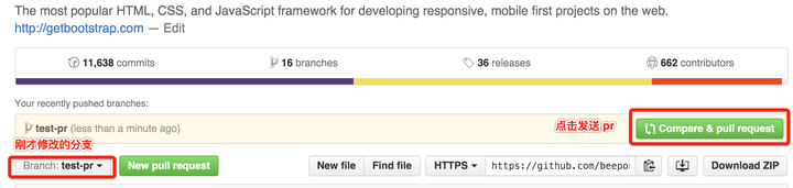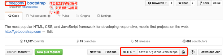 理解了 pull request 的含义和流程,具体操作也就简单了。以 Github 排名最高的 https://github.com/twbs/bootstrap 为例说明。