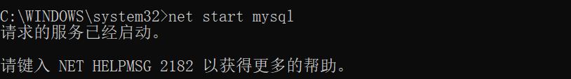2. 输入 net start mysql ( 如果不以管理员身份运行的话会有权限问题,拒绝访问 )