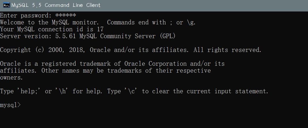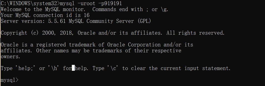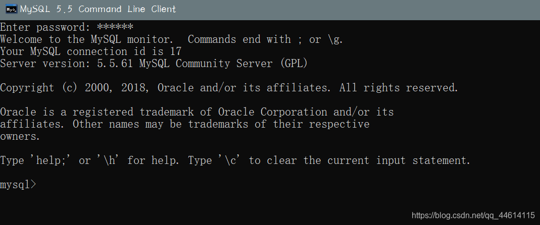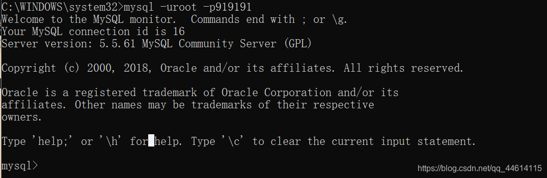3. 登录的核心语句 mysql -u用户名(root)-p(密码)