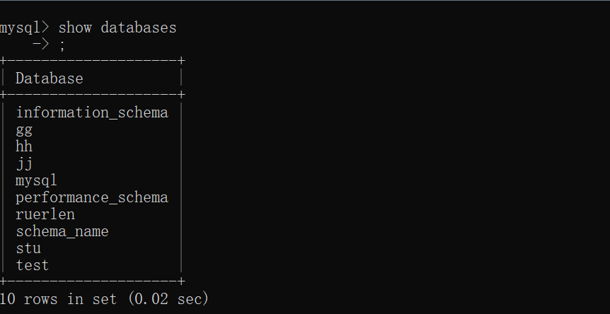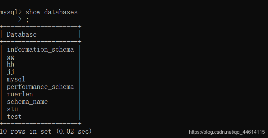 下面是使用Mysql的命令行的效果,其实他们俩的状态是差不多的,只不过上面的方法让人感觉逼格很高~