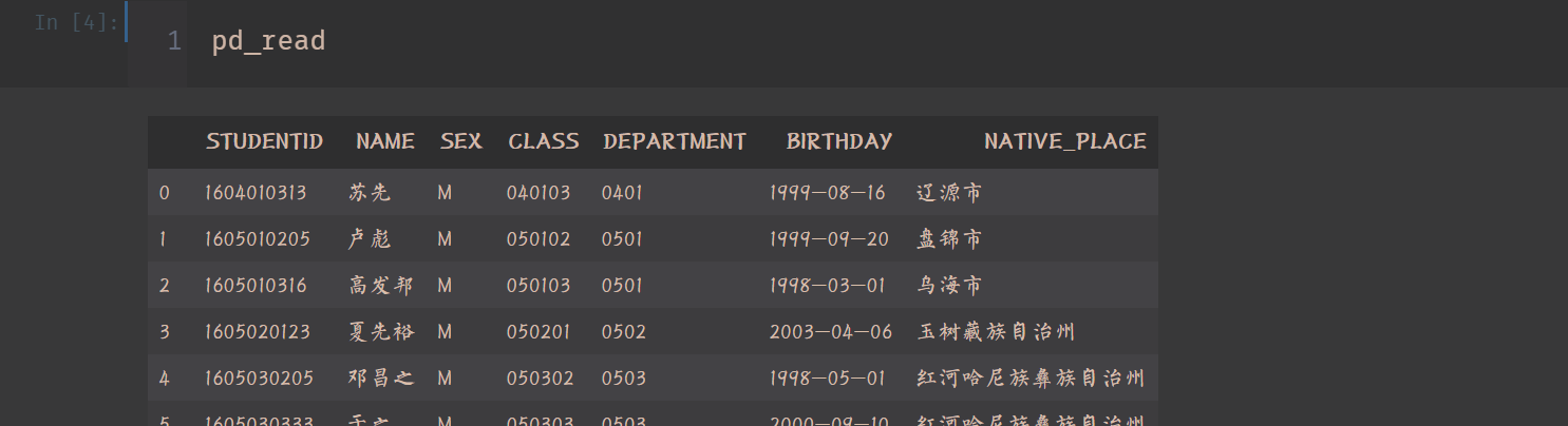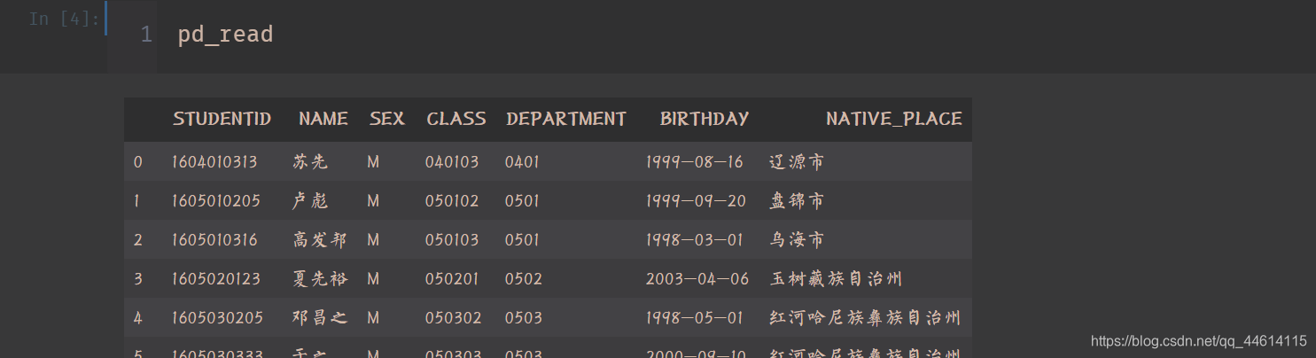 查询数据(info 是一张table(表),有数据库基础的都懂,没有的也不要慌,之后我会出一篇哈~,或者大家可以参考别的博客看)
