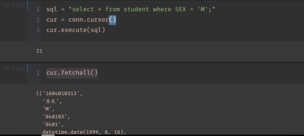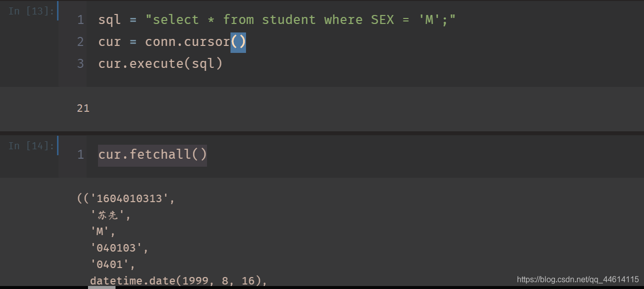 conn = pymysql.connect(host = '127.0.0.1', user = user, password = password, port = 3306, db = 'gg')