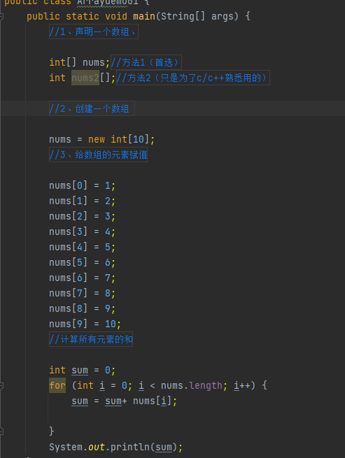 2,获取数组长度可以用nums.length来获取,但这个命令只是获取数组有多少个数,不能获取到具体数组内的数字;