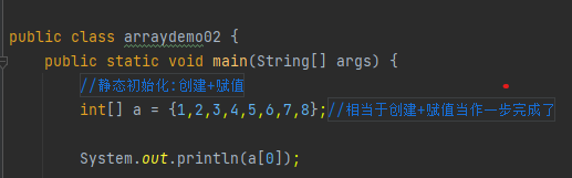 静态初始化相当于创建数组和给数组里的元素赋值一起完成了。