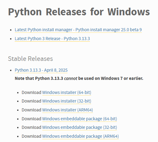 方法一,可以直接从Python的官方网站下载Python 3对应的Windows安装程序,推荐下载Windows installer (64 -bit),然后运行下载python-3.x-amd64.exe安装包: