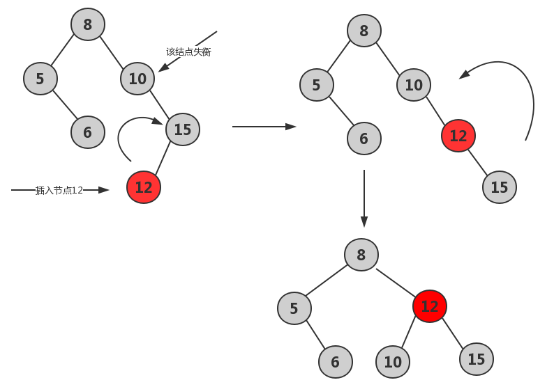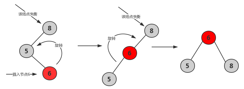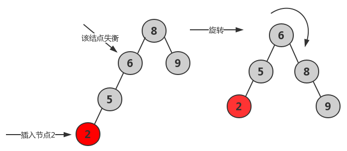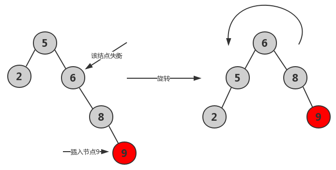 向左旋RR:由于在a的右子树根结点的右子树上插入结点,a的平衡因子由-1变为-2,需进行一次左旋转操作。