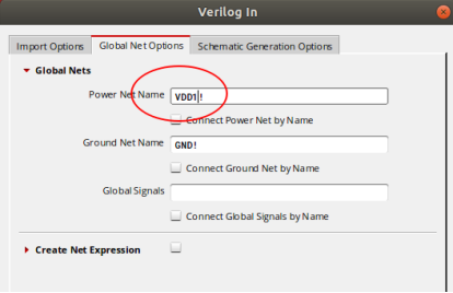 注意:本示例中仅使用VDD和VSS,它们不是全局网络。为了避免名称冲突,将名称更改为VDD1!。