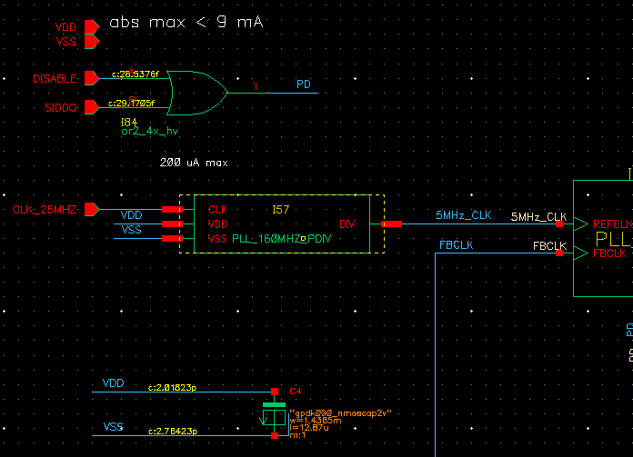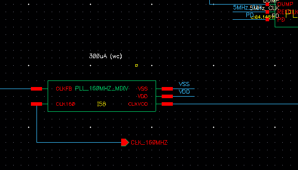 2.打开amsPLL.PLL_160MHZ的schematic,把刚.v生成的PLL_160MHZ_MDIV和PLL_160MHZ_PDIV填加到原理图中。(教程中已经添加进去了,可把原来的删除,更换成刚.v生成的PLL_160MHZ_MDIV和PLL_160MHZ_PDIV)