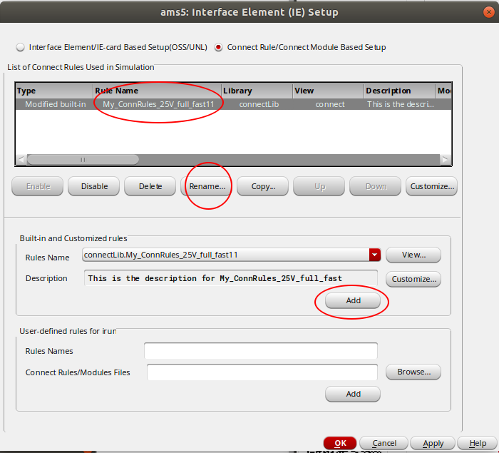 13.单击确定,点Add,然后选择新的修改后的连接规则。 请点击Rename名称并将其编辑为My_ConnRules_25V_full_fast。 单击确定。