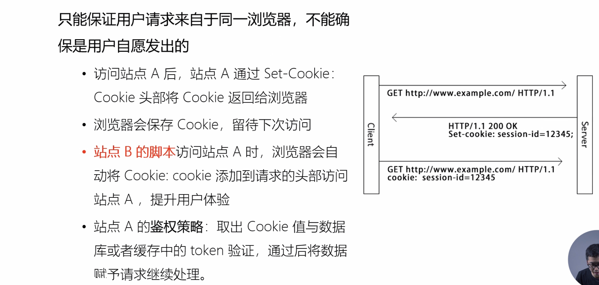 - 使用referer头部,当请求从攻击者网站发出时,浏览器会自动添加referer头部,此时,服务器通过验证referer头部即可