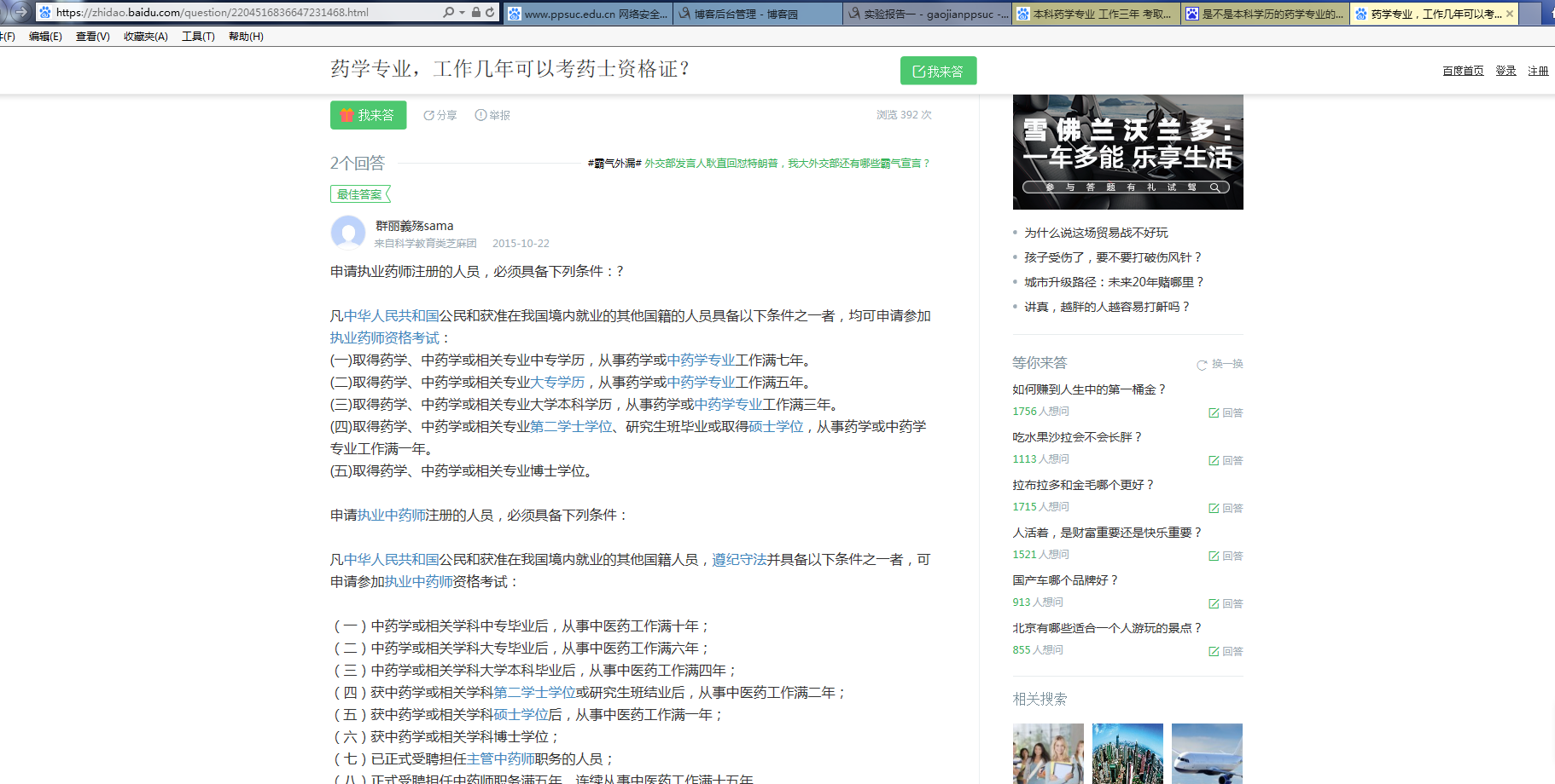 小丽是药学专业的一名本科生,现已从事药学专业的工作,目前她想考取一个资格证,但是报名条件中要求其工作满三年。那么,小丽想考取的是什么证。(请回答并附截图证明。)