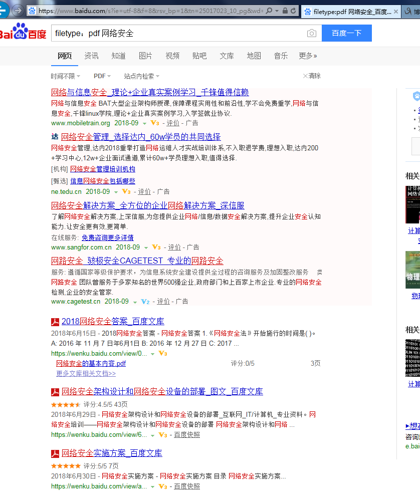 用百度或google搜索所有包含“网络安全”的pdf文档(附截图)