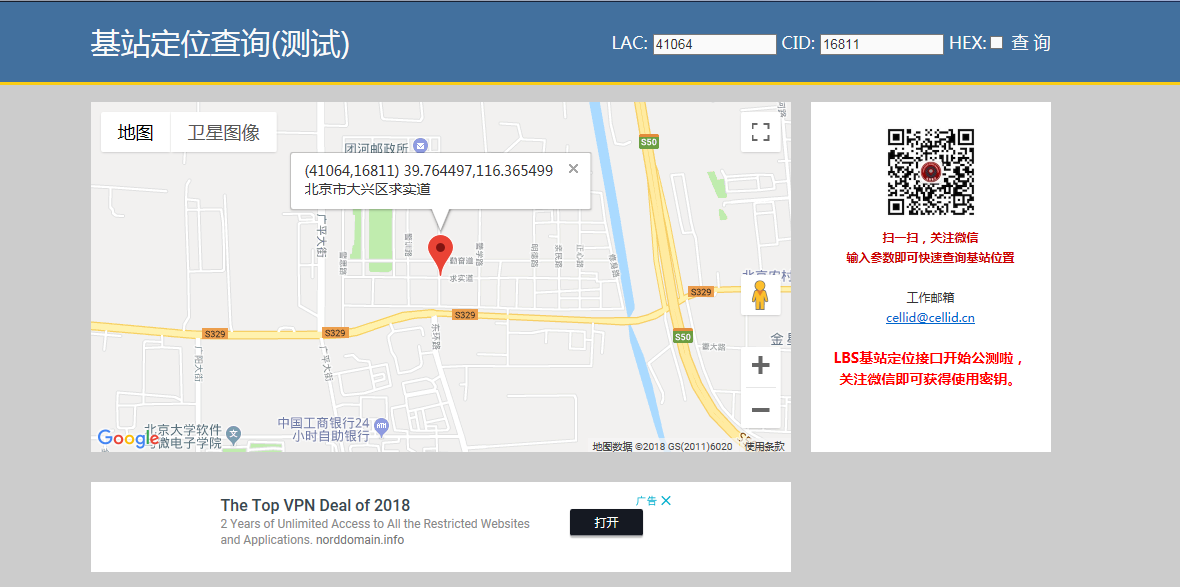 在一个案件中,获取了犯罪嫌疑人的LAC是41064,CID是16811,这个人可能在什么地方?(附截图)