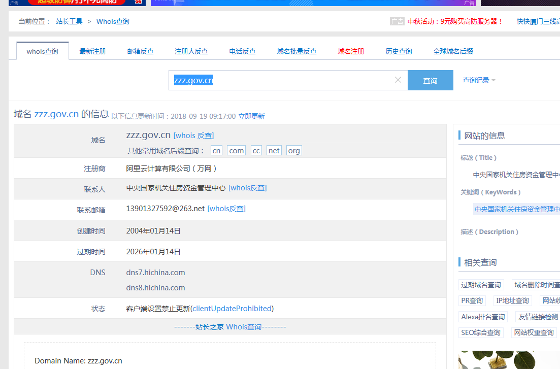 获取www.zzz.gov.cn域名注册时,注册人的邮箱是(附截图)