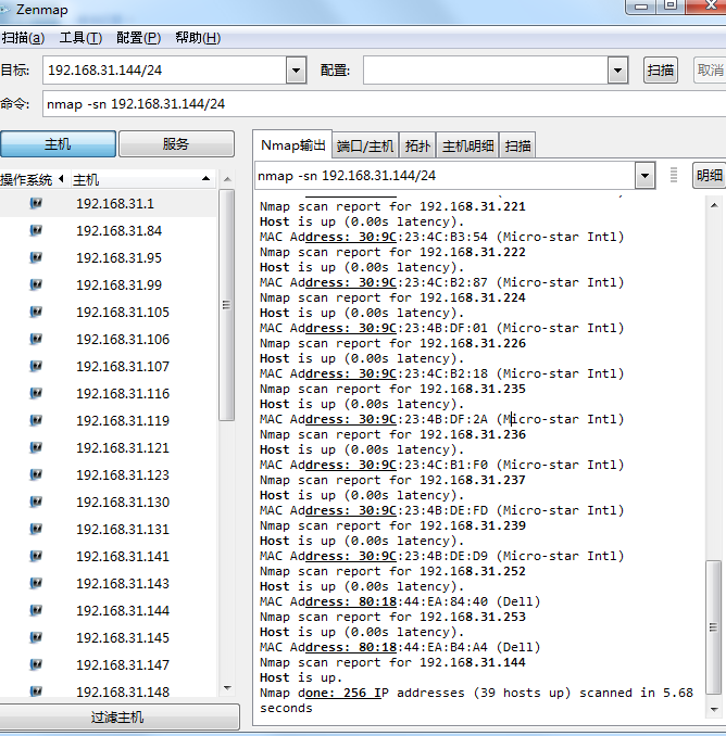 请查询本机的IP地址和子网掩码,并在局域网中扫描本网段内的所有存活主机(附搜索截图)