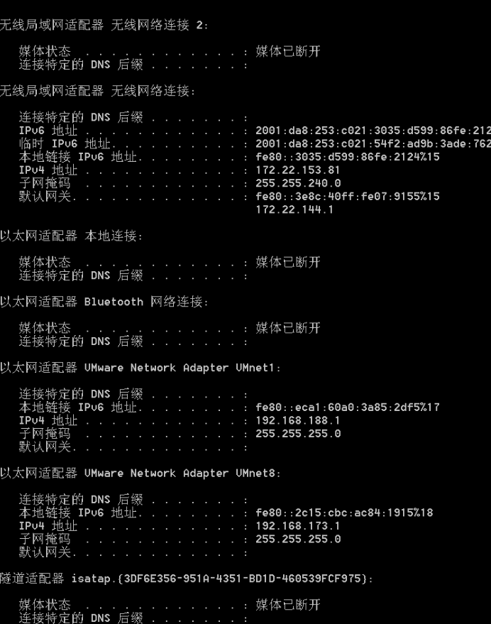 - 安装windows和linux(kali)两个虚拟机,均采用NAT网络模式,查看主机与两个虚拟机器的IP地址,并确保其连通性。同时为两个虚拟机做一个快照。