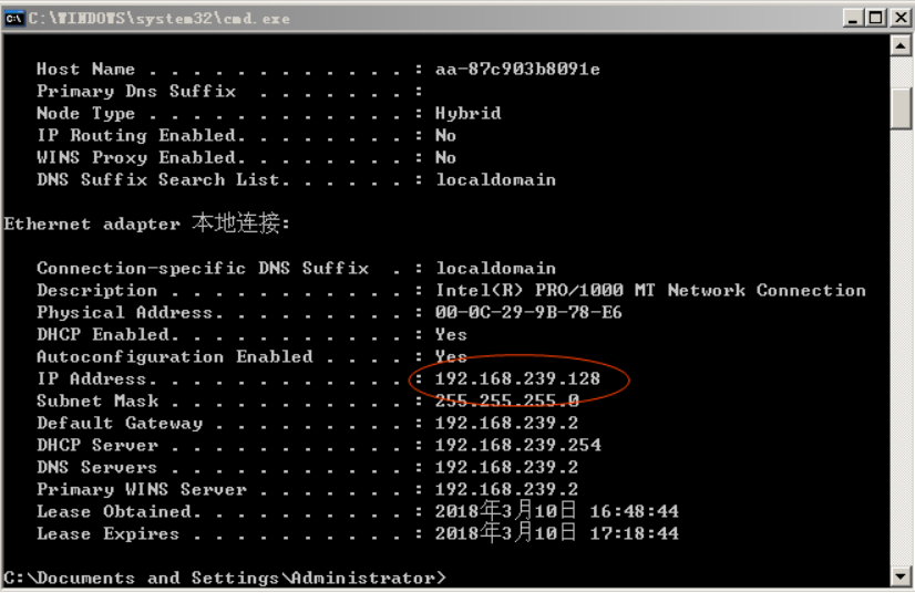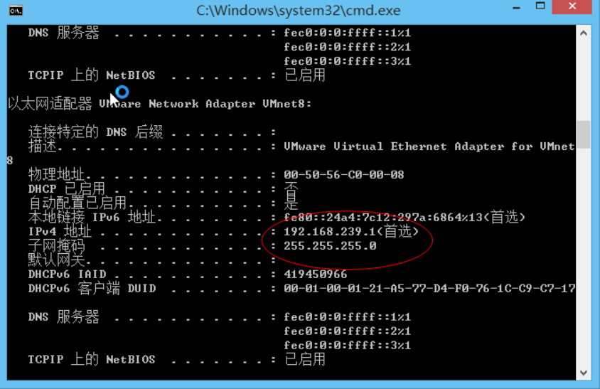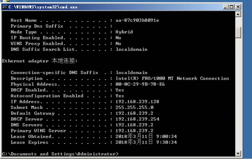 ipconfig /all 网络配置