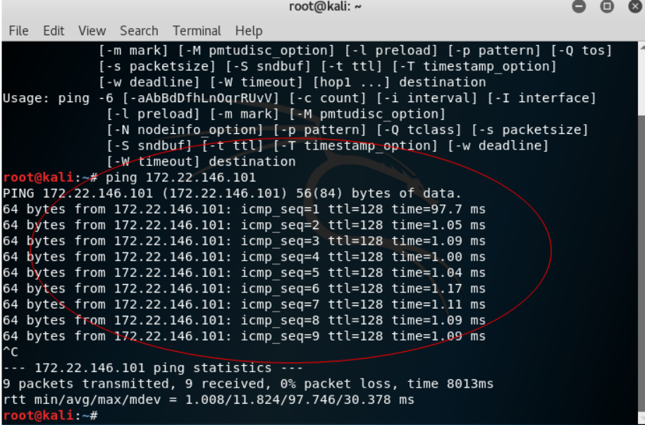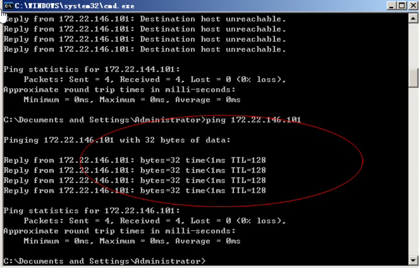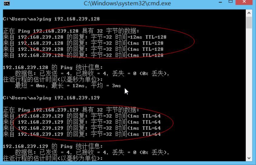 Ping 主机可达 Ctrl+c键来强行终止当前程序
