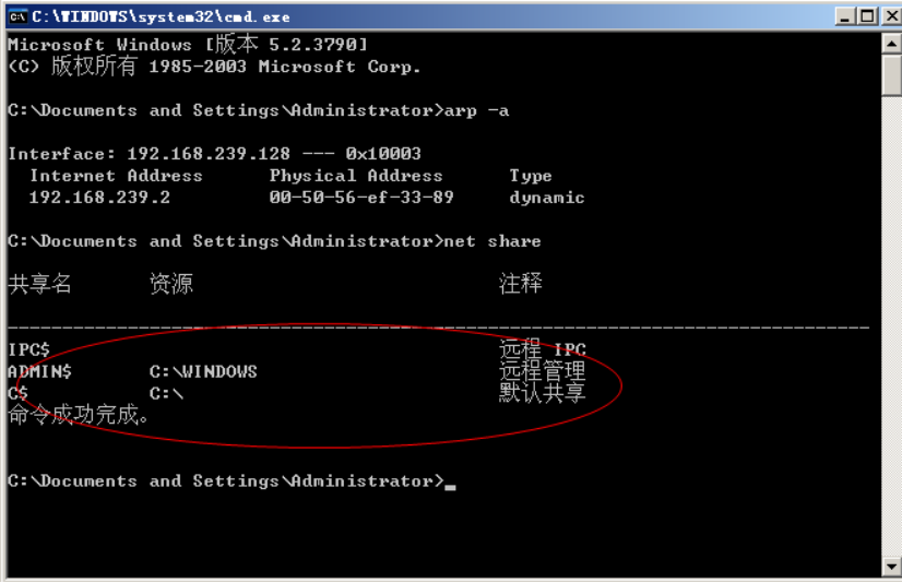 net share 查看计算机IPC$共享资源