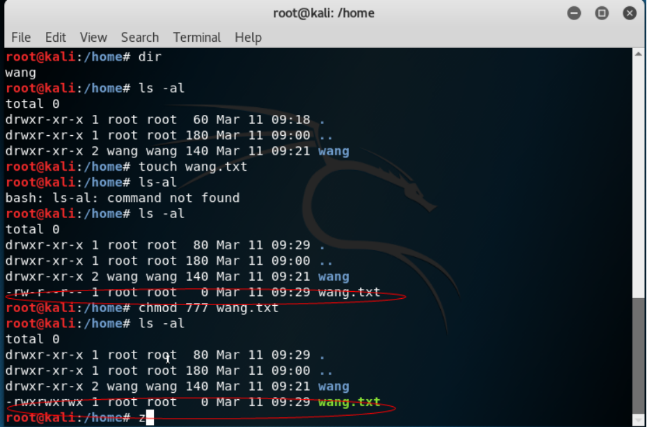 - 创建一个文件,并更改该文件的权限为rwxrwxrwx