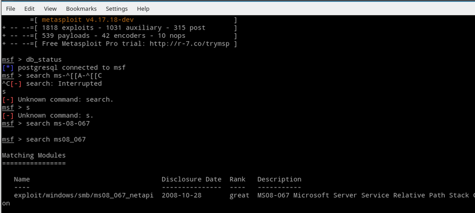exploit/windows/smb/ms08_067_netapi