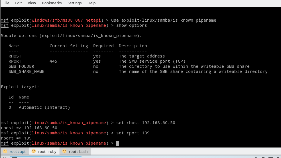 其中RHOST代表要攻击的目标IP地址
