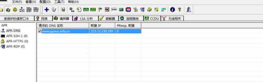 欺骗成功后,在被害机器上查看www.ppsuc.edu.cn的IP 查看是否被解析到了,指定的IP地址上