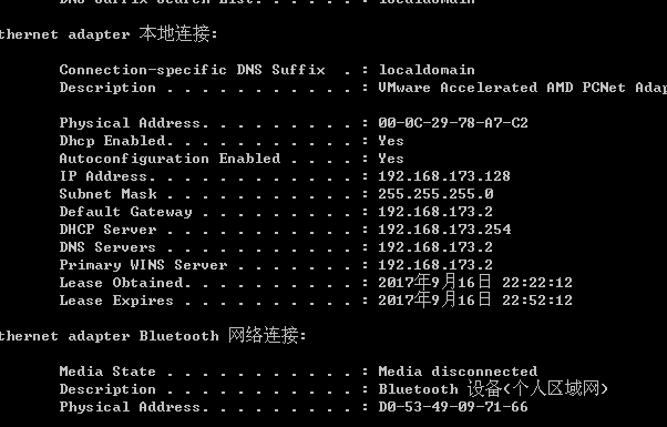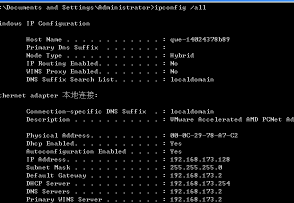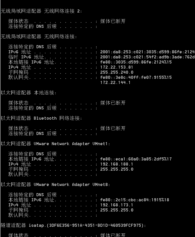 - ipconfig /all 网络配置