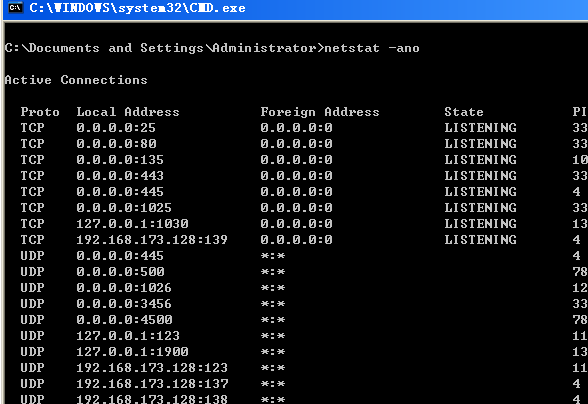 - netstat -ano网络链接状态