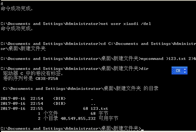 - 输出重定向 > ,并用dir 查看导出文件是否成功