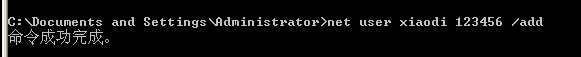 - net user xiaodi 123456 /add添加用户名为xiaodi,密码为123456的用户