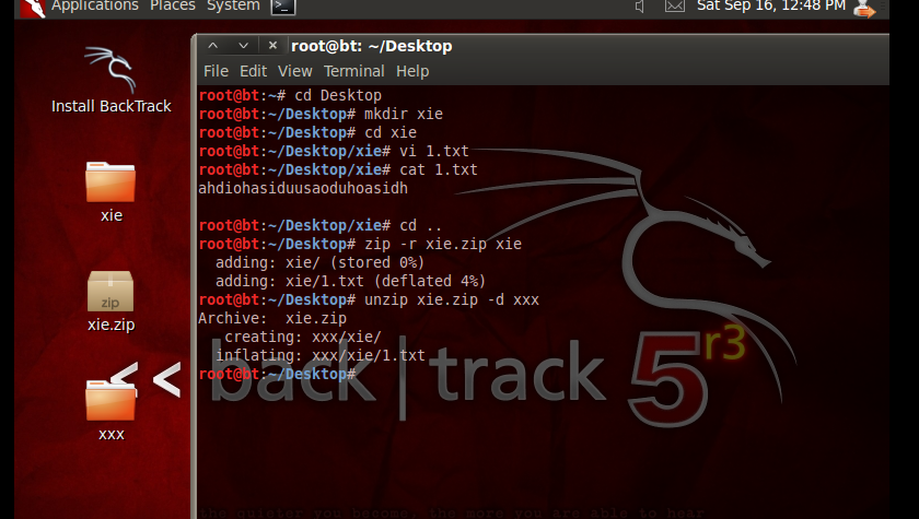 - 创建文件夹,文件夹中创建一些文件,将文件夹打包,最后解包到另一个文件中