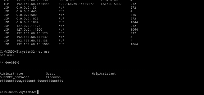 接着使用net user命令查看XP系统中的用户