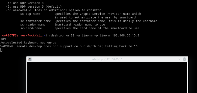 rdesktop -a 32 -u gao -p 123 172.16.211.129:3389